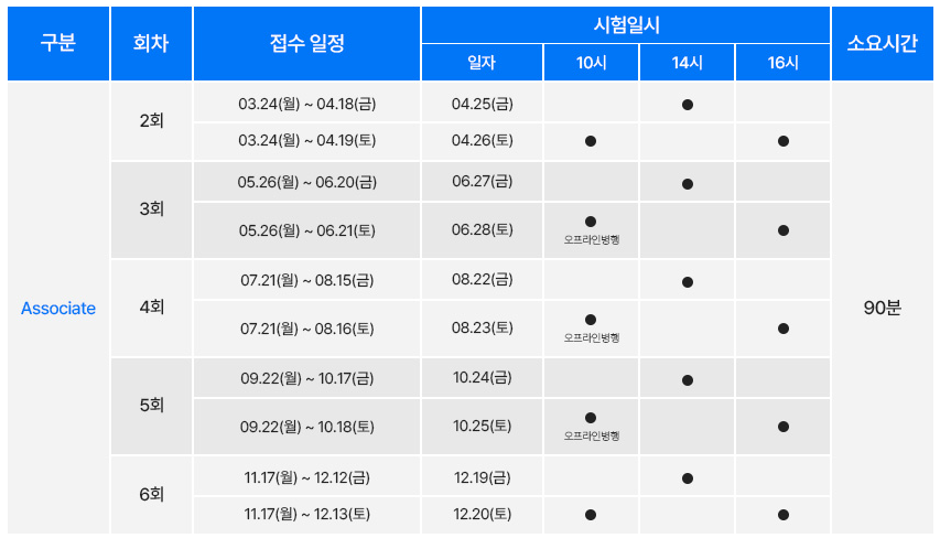 종류는 총 5개로 나뉘어져있고, 나는 이중에서 준/전공자 과정인 ASSOCIATE를 도전 해보려고 한다.